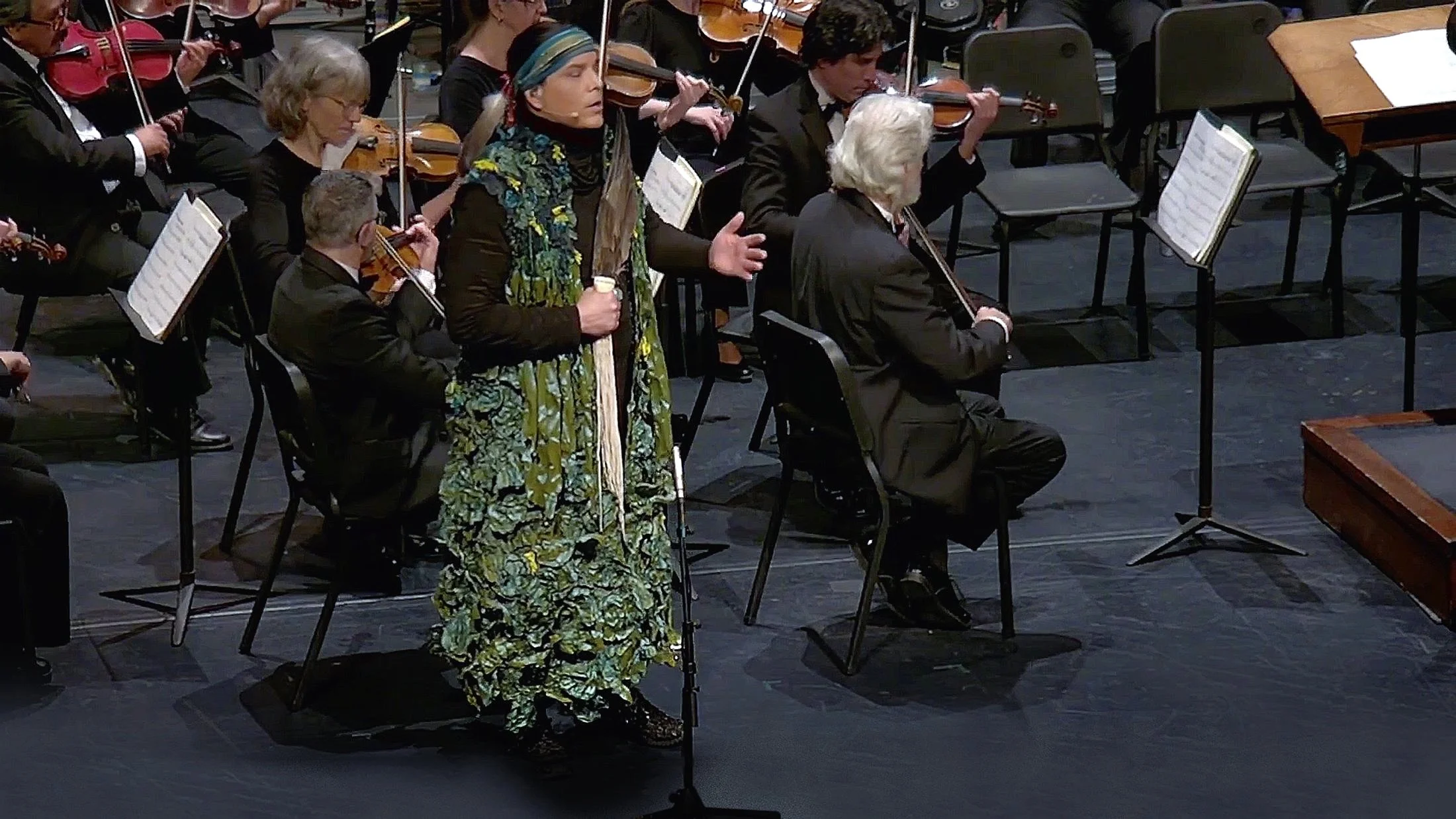 “militakwat” pronounced mill-e-duh-kwut is the Penobscot word for “it has all kinds of sounds” and is Firefly’s orchestral debut. A historic collaboration between the Bangor Symphony Orchestra, Arranger/Orchestrator Ben McNaboe and Firefly, this 3 part movement is rooted in ancient Wabanaki music and was the first collaboration between a Wabanaki person and the Bangor Symphony since it was founded in 1896. This original piece World Premiered at the Collins Center for the Arts, University of Maine, Orono and was performed as part of the Bangor Symphony Orchestra’s “Ode to Joy”season finale on April 30th, 2023. Firefly joined maestro Lucas Richman, a full orchestra, 138 choral singers comprised of the University of Maine Singers Euphony, Orono’s Chamber Choir and the Oratorio Society and performed to a sold out hall.
